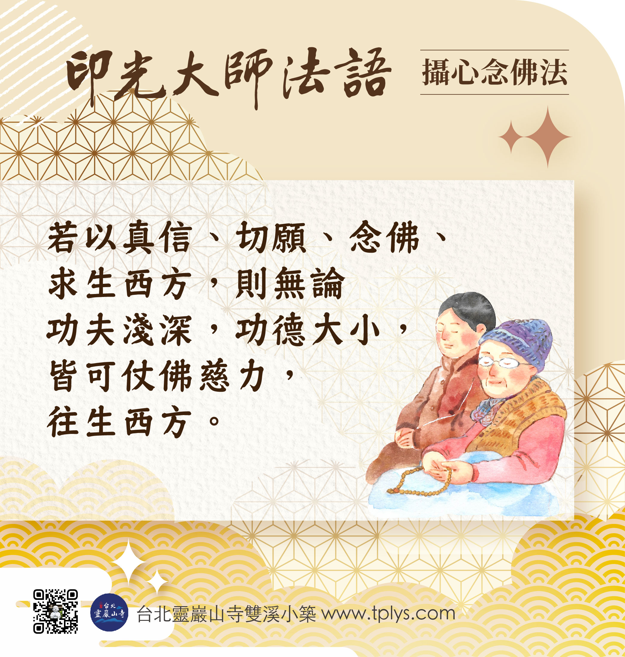 若以真信、切願、念佛、求生西方,則無論功夫淺深,功德大小,皆可仗佛慈力,往生西方。若以真信、切願、念佛、求生西方,則無論功夫淺深,功德大小,皆可仗佛慈力,往生西方。