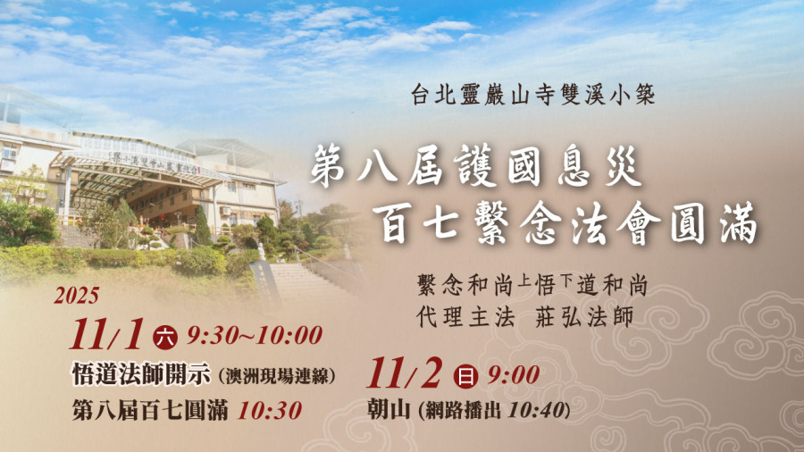 淨宗導師 上淨下空老和尚於七月二十六日凌晨兩點圓寂,八月十五日是 導師生西三七之期,誠邀蓮友上山為 導師做【三時繫念法會】回向,以報師長恩!