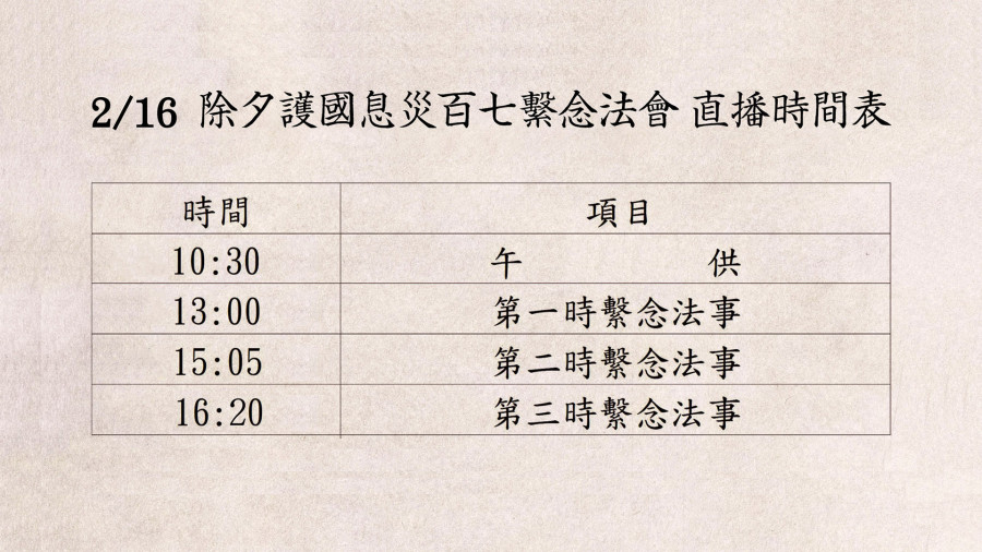 2月16日除夕法會直播時間更動公告