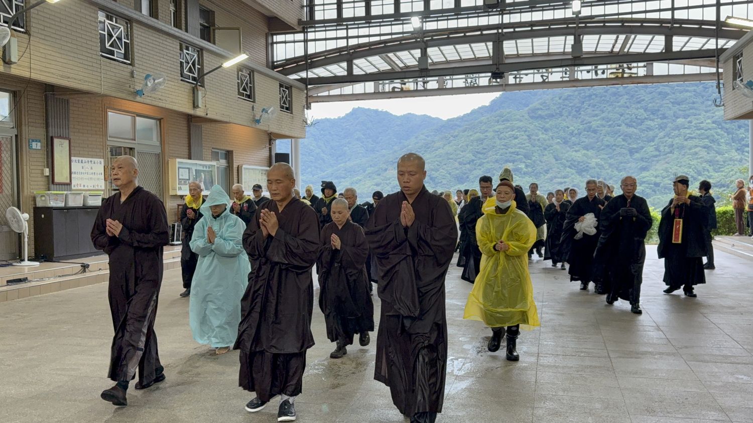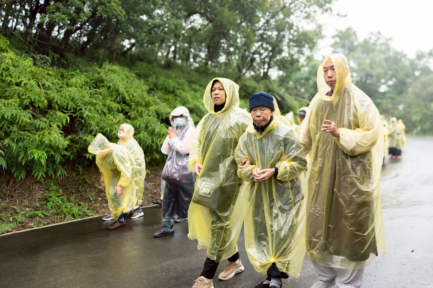 清晨,細雨如絲,輕輕灑落在雙溪小築的山徑上。台北靈巖山寺雙溪小築第八屆百七護國息災法會剛剛圓滿,然而修行的腳步並未止息。翌日,四眾弟子齊聚山腳,無懼風雨,整齊列隊,準備朝山禮佛。